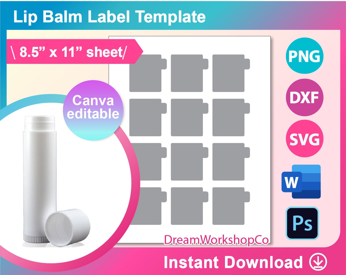 Lip Balm Labels, Custom Chapstick Labels, Lip Gloss Labels ... Easily create your own lip balm labels using our free label templates. We have a variety of designs for all your lip balm containers. If you're using lip balm tubes as your containers and are offering them for sale or as promotional items, then we recommend our 2-3/16" x 2-1/8" lip balm labels with a perforated seal. Lip Balm Label Template - Etsy Lip balm Label Template, Sublimation Template, SVG, Canva, DXF, DOCX, Png, Psd, 8.5x11" sheet, Printable, Instant Download DreamworkshopCo (12,547) $1.93 $2.15 (10% off) Lip Balm Label Template, Lip Balm Wrap Packaging, Editable Product Label, Custom Lip Balm Packaging, DIY Customizable Cosmetic Label - April TrendyFoxStudio (5,890) $4.79 Free Lip Balm Tube Label Templates for Word, Canva, Adobe ... Free Lip Balm Tube Label Templates for Word, Canva, Adobe -- Learn to how to design, buy and label your bottles — Dashleigh Template Center Downloads - Help - Free Designs - Buy Dashleigh lip balm labels with security seals - 2 x 2.15 in Template number #8387 Lip Balm Labels $14.95 - $19.95 10 Sheets with 60 total labels 12 per page 8.5 x 11 inches