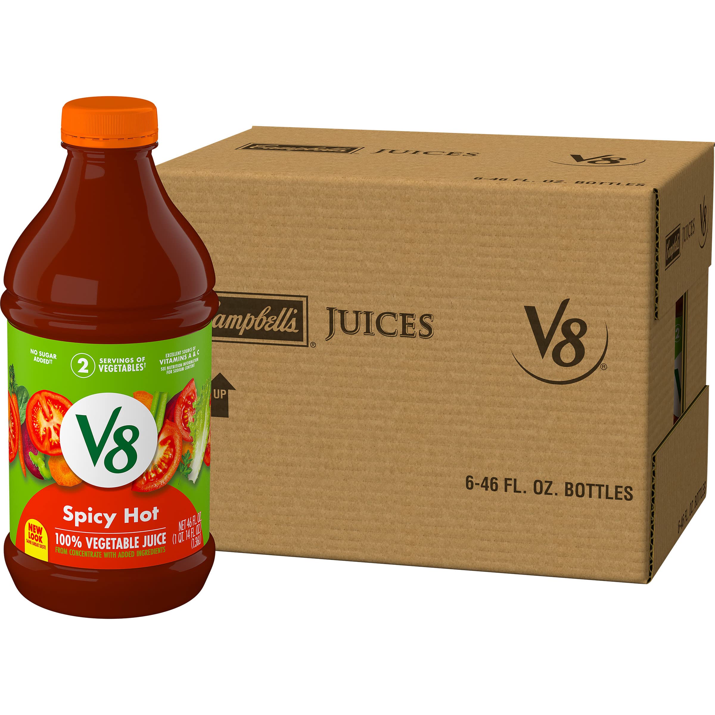 Original 100% Vegetable Juice - Campbell Soup The original V8 juice! This uniquely satisfying blend of vegetable juice is an excellent source of Vitamins A & C and helps you get 2 servings of vegetables ...