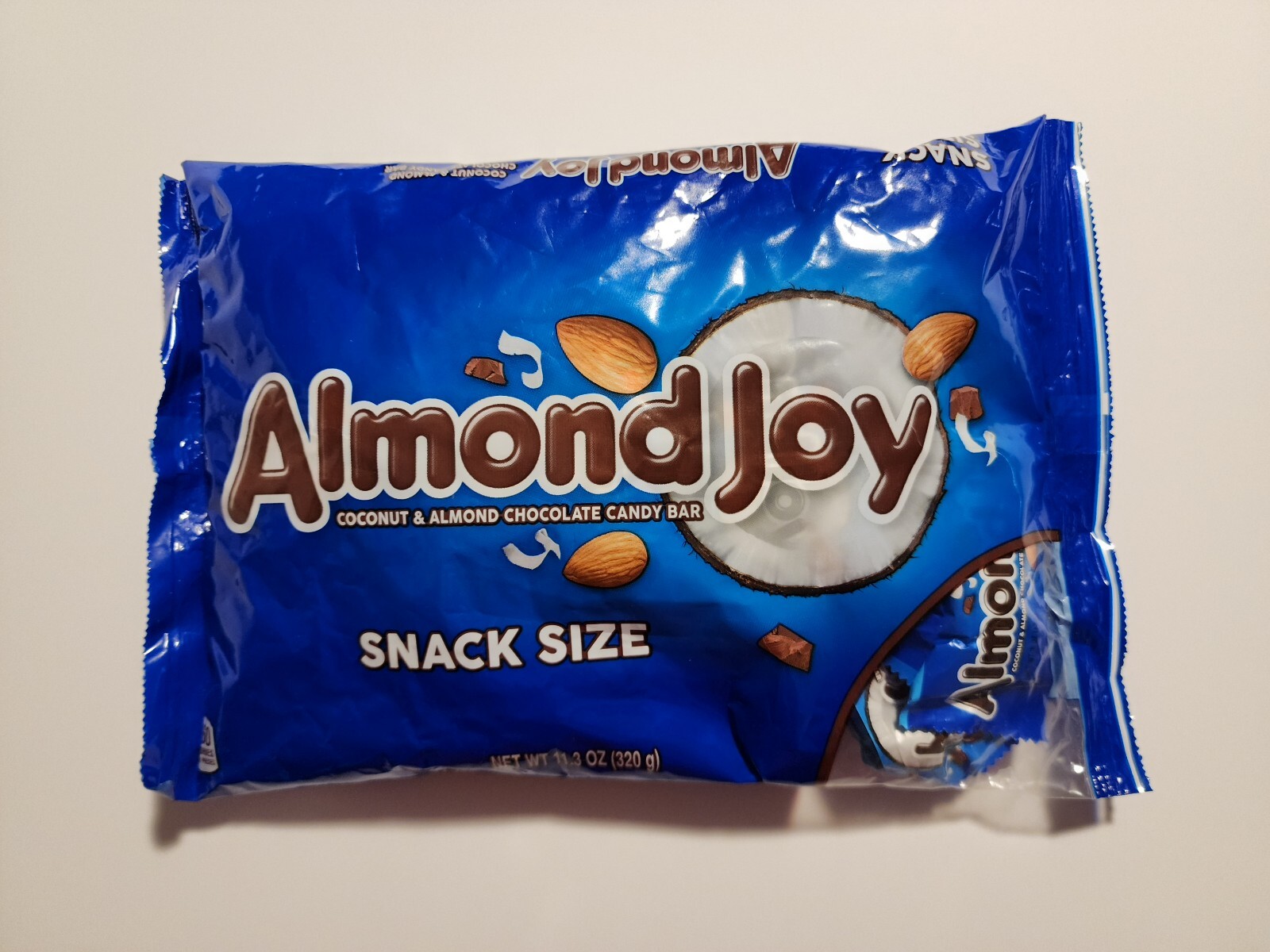 ALMOND JOY Snack Size Candy Bars | Product & Nutrition 4.4 (69) Write a review ALMOND JOY Coconut and Almond Chocolate Snack Size Candy Bars, 11.3 oz bag Nothing says Halloween joy like ALMOND JOY Candy Bars! Theyʼre sweet coconut and whole almonds wrapped in a chocolate candy coating, so itʼs pretty exciting to find one in your treat bucket.
